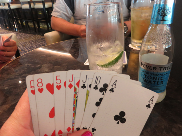 Just enough time to sprint down to the front of the ship for the Syndicate Quiz. Apparently it was heaving with 9 teams and we had to set up our table next door in the Ivory Suite (where they hold the marriage services). Some very tricky questions and the three of us ended up two off the pace.