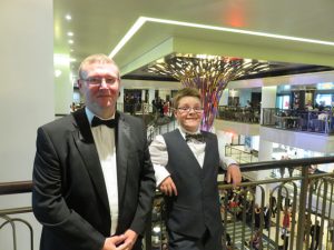 Callum wanted to go to Kids Club this evening as he thought there was a flag quiz on (it turned out to be a food tasting quiz) so the grown-ups went to the Crows Nest for post-dinner drinks. We got in just in time as the masses arrived just after we did. We collected Callum later on and then headed to the syndicate quiz. Just 3 teams tonight – and it was a three way dead heat at the end. Two tie-breakers later, table 9 were declared the winners. It was good fun and learnt that there were about 3,700 passengers on this cruise… 2,700 of whom were first time cruisers! Average age was just 40!!! Must be all those kids on boarding bringing the average age down!
