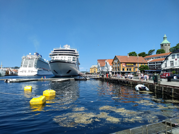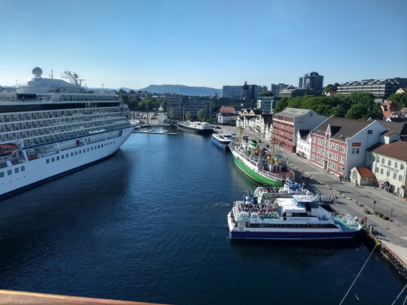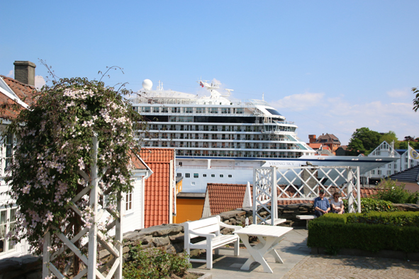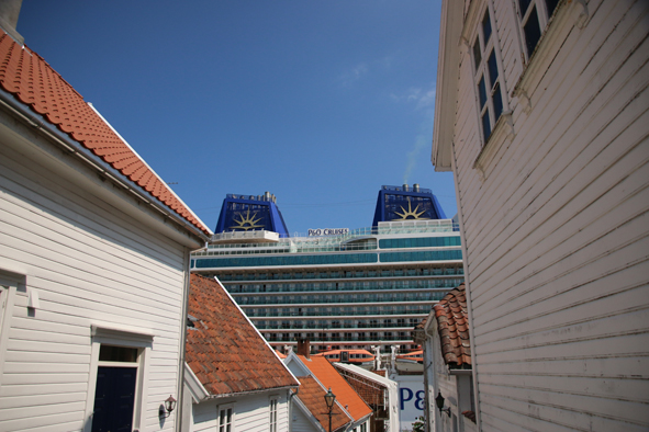 We pulled back the curtains this morning and the sun streamed into the cabin. We had arrived in Stavanger and were berthed right next to Gamle Stavanger – right next to the old white wooden houses the city is famed for. To our left, Viking Sky was blocking our view of the town (but as Britannia had totally spoilt their view of Gamle Stavanger, we’ll let them off)!