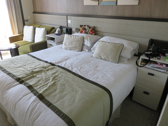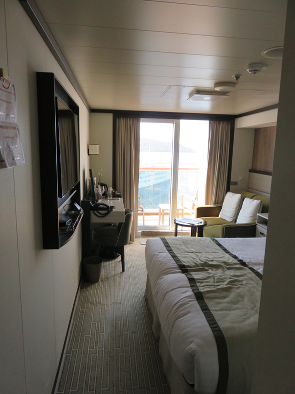 Our cabin was C735 – an aft cabin right at the back of the ship with views over the wake. We loved it and would happily have this cabin again. It was one of the more expensive balcony cabins as it had a sofa bed … but a cheaper option than booking a superior deluxe balcony on Azura.
