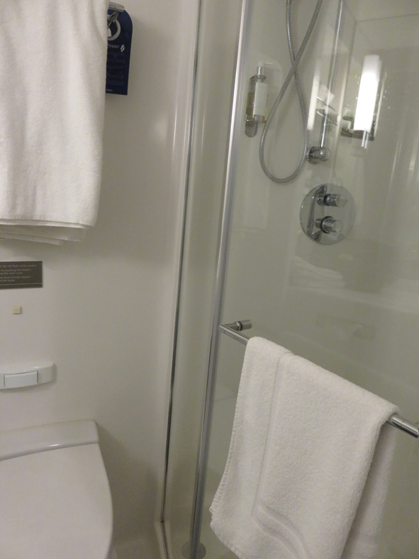 The bathroom at first glance was compact – but had a lovely large walk in shower with glass screens (no being attacked by shower curtains!)