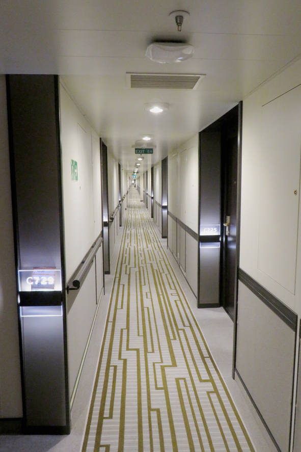 Britannia is a pretty long ship – sadly though, you cannot stand at one end of the corridor and look right down to the other end. It jiggles around at the front, so you only see down about 2/3rds of the length of the ship. Still pretty long though.