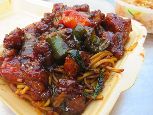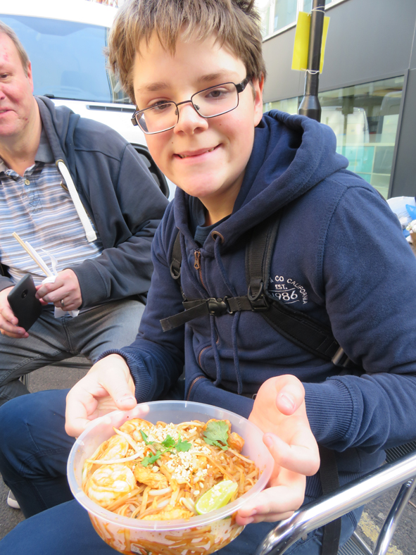 We were completely spoiled for choice. The vendors lined the street and they just went on and on and on! Callum and Jon eventually settled on Thai Green Curry and Pad Thai whilst I went for Teriyaki Chicken with noodles. Really good and am sure we’ll be back on a future visit.