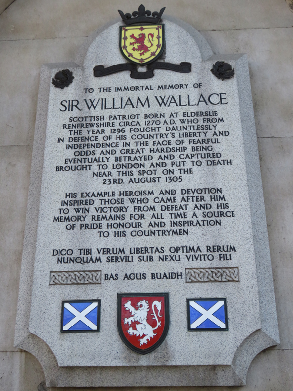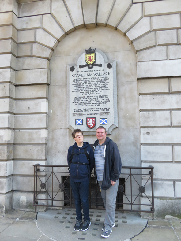 From Leather Lane we wandered by Smithfields before heading down towards St Pauls. En route, Jon spotted on Googlemaps that there was a William Wallace memorial – he’s a bit of a Braveheart fan. We searched and searched but couldn’t find any statue. Eventually we discovered the memorial was a plaque on the wall – this was marked the spot where he was hung, drawn and quartered.