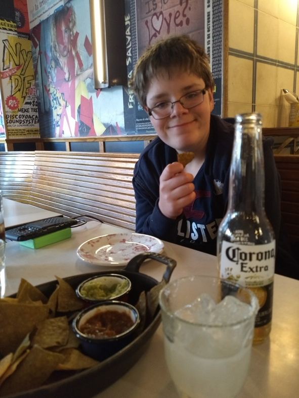 Next stop was to find somewhere to eat. There were lots of restaurants nearby and we settled on Mexican at La Bodega Negra. Food was really good. We had some Nachos and a quesadilla style garlic bread for starters Jon and Callum had burritos and I settled on fajitas.