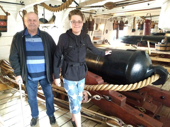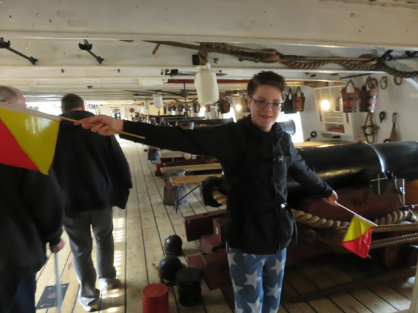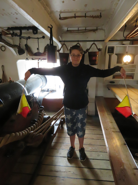 As it was school holidays, they had several talks on board today. One about the cannons and firepower the ship had. Although we’d explored previously, we hadn’t realised there were two types of cannons on board. There were also different types of cannonball which would inflict varying degrees of damage to the ship – and crew.