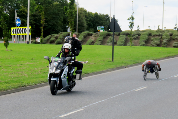 Total respect for these guys – the strength in their arms and so incredibly quick on their wheels. They fly past you before you know it. We saw David Weir go pass us first – he went on to win the race. About 10 minutes later, Mick whizzed by. In between, a couple of the leading ladies ran passed – much slower and easier to get photos!!