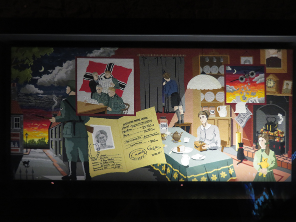 The tapestry was first port of call and the panels were stunning. The interactive displays have more information on the subject covered on each panel covering the arrival of the Germans on the Island, life under German Occupancy and the final panel covered Liberation. Lots of small details and it will take more than one visit to really appreciate everything.