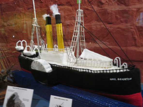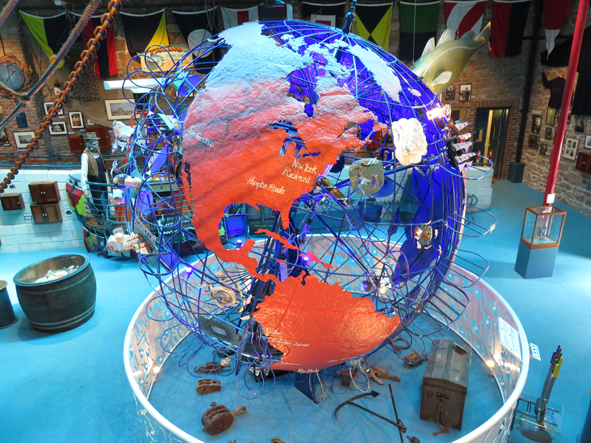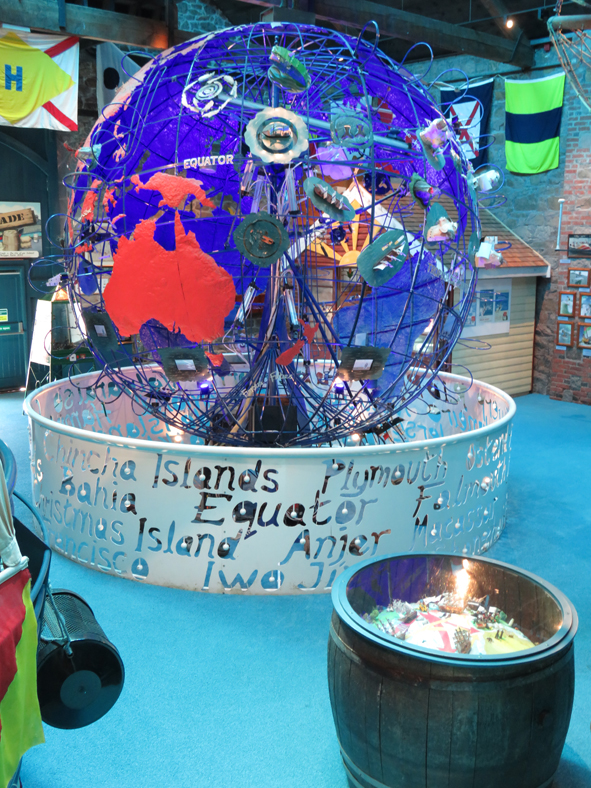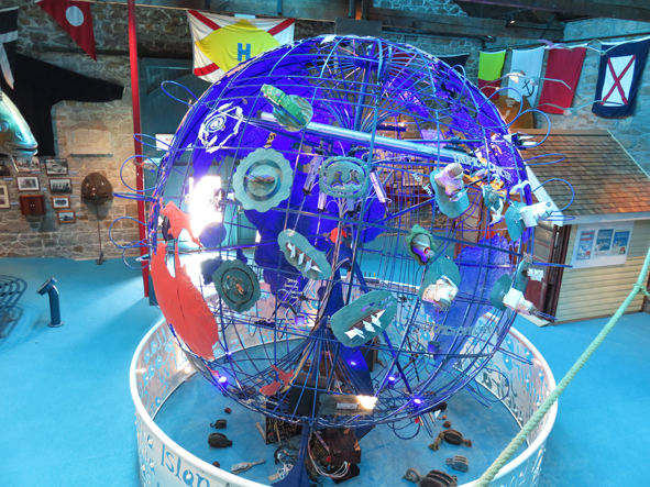 From here, you go upstairs to see the Maritime part of the museum. Information about the local island and habitat, a fan knitted underwater sea scene, nautical memorabilia and at the end a giant globe depicting 4 different sea voyages. Sadly it wasn’t working as it should with ships sailing out of time to the commentary and some ships not sailing at all … but you got the idea.