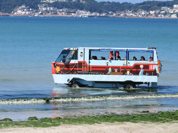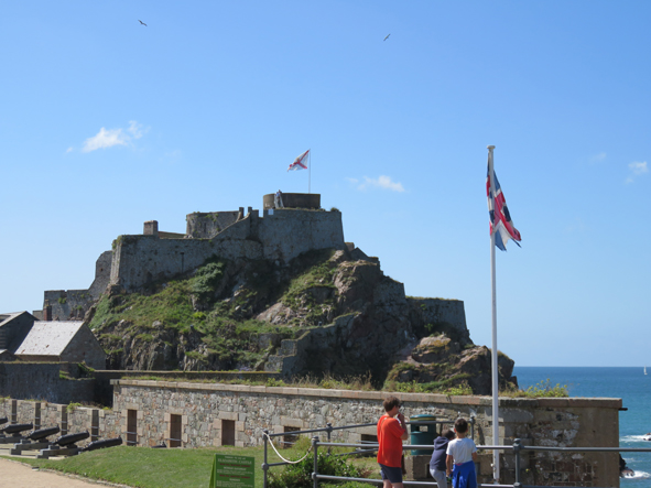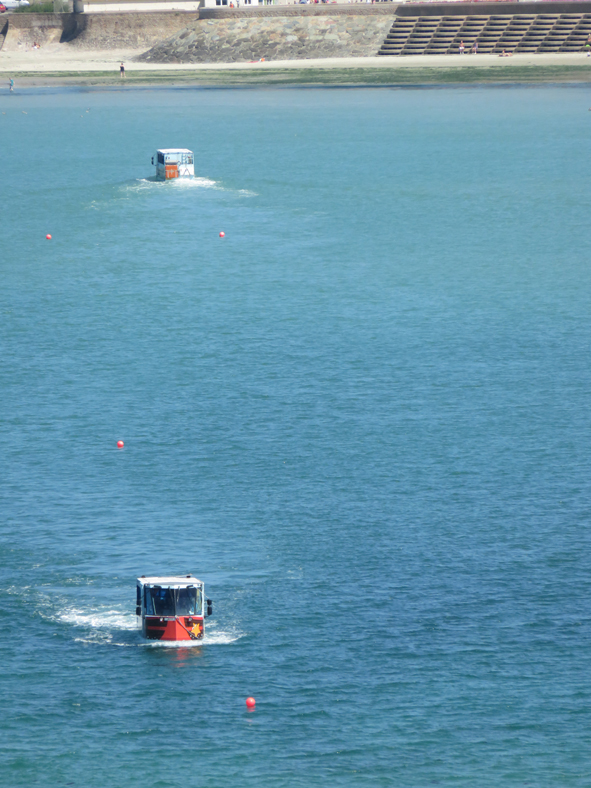 From here it was a walk around the harbour to catch the ferry (amphibious vehicle) across to Elizabeth Castle … set on an island just of the coast.