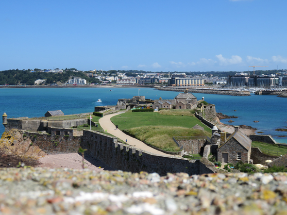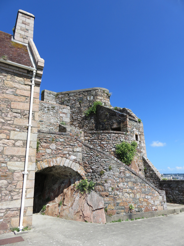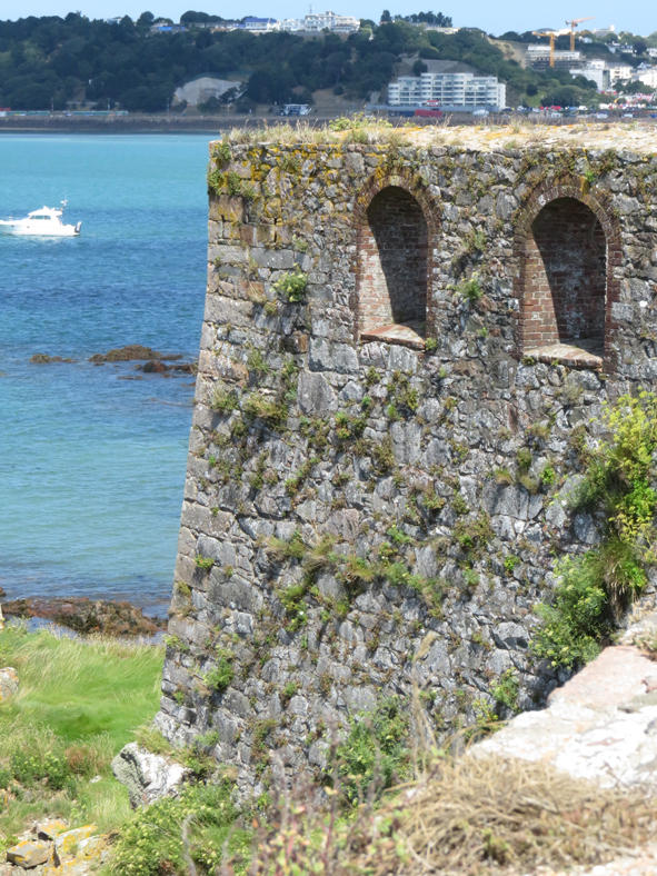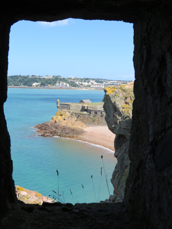 Lots of nooks and crannies to explore … inside the governor’s house, the German gun towers, the old munitions stores. Also some very stunning views over St Audins Bay and of St Helier itself.