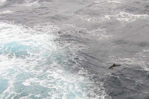 We went back to the cabin … then Jon spotted some Dolphins. Just to the back of the ship off the starboard side. Callum eventually spotted them through his ‘noculars!
