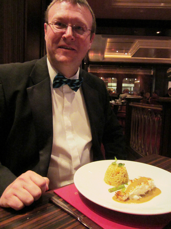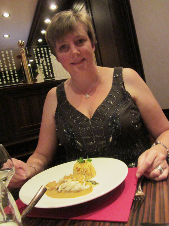 Unfortunately, we got waylaid by a glass of Peller Ice in The Glass House … so when we arrived in the Dining Hall a little before 8pm, there was an hours wait for dinner. This combined with the fact there was no Lobster Thermidor on the menu … to get that, you needed to go to Neptune’s Buffet in the self-serve area.