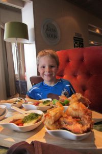 Callum happily headed back to Kids Club afterwards for Carnival Day whilst Jon and I went to the Glass House Wine Tasting. There were only about 20 of us signed up and we sampled two whites and two reds, including the most expensive red on menu. Unbeknownst to us, the two white wines we were sampling, we’d tried the night before – the Spanish Albarino and the South African “FMC”. Little bits of tapas style food accompanied the wines, and it was a very pleasant way to spend an hour or so.
