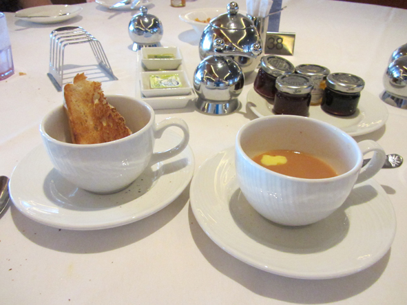 We had lunch in the Peninsular Restaurant – just soup and a sandwich (well, I had salad, Jon and Callum had the burger!).A little more civilised than the buffet!