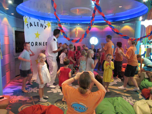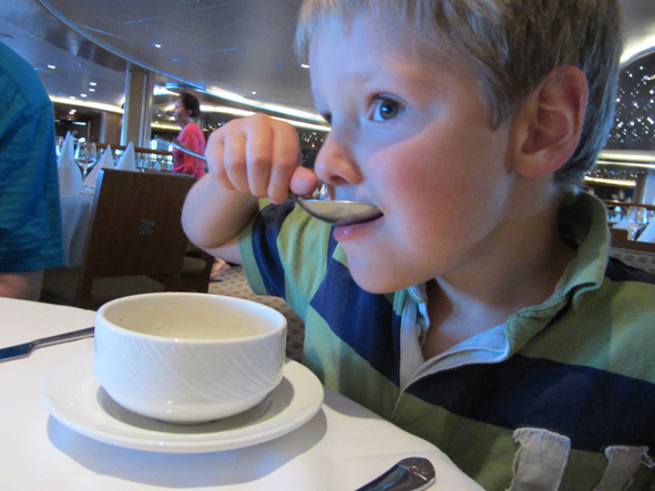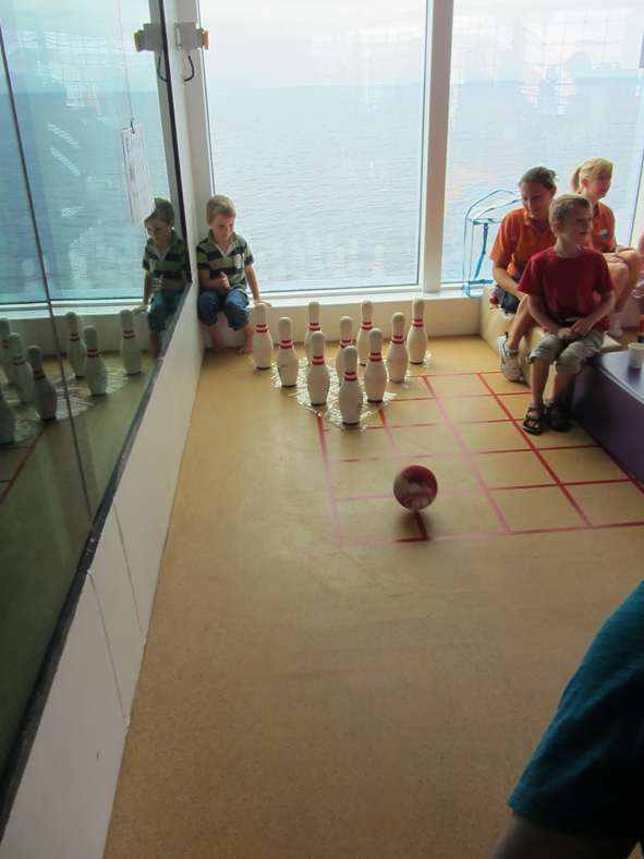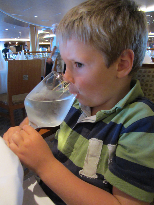After the meal we went to check up on Callum and even though it was only 9.15pm he was ready to go back to the cabin. They were showing ”Where The Wild Things Are” and whilst he loved the book, the film with all the creatures brought to live freaks him out a little. We should set foot on dry land tomorrow, so probably not a bad move.