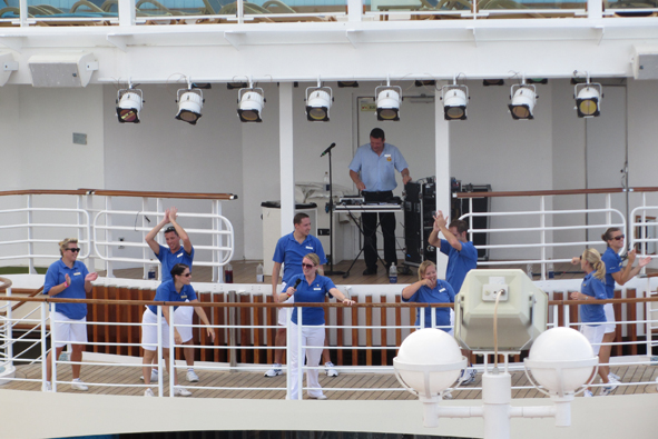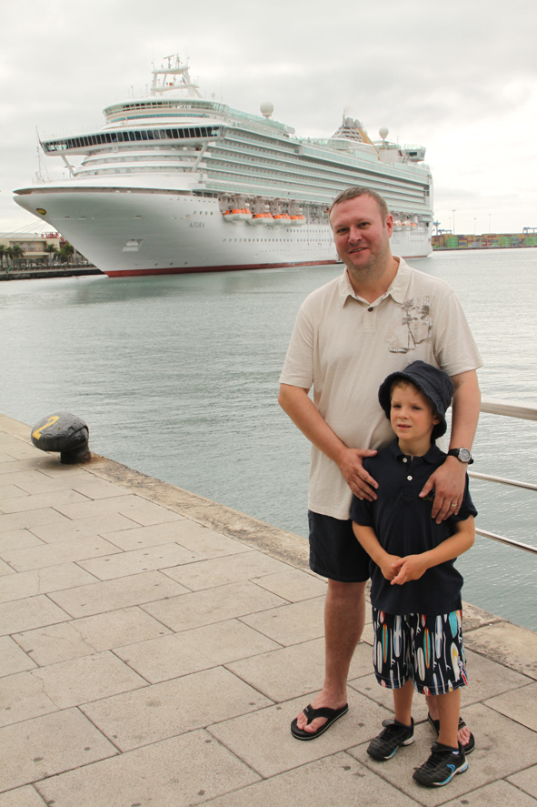 Back on the bus to the port … Callum’s learning well from Jon. He was really starving so we couldn’t have a look around the shops, we had to go back on board for lunch!! We actually made it to the Buffet lunch today for some soup and salad. Afterwards, Callum headed off to Frontiers for an hour or so before Kids Tea and the sailaway party around the Aqua Pool.