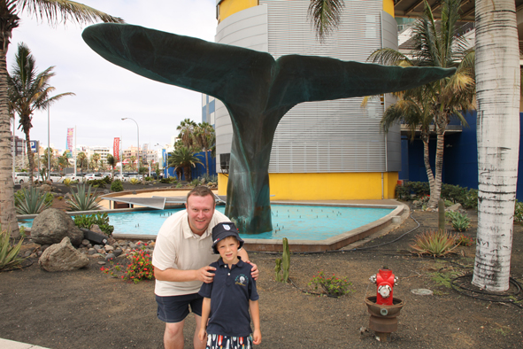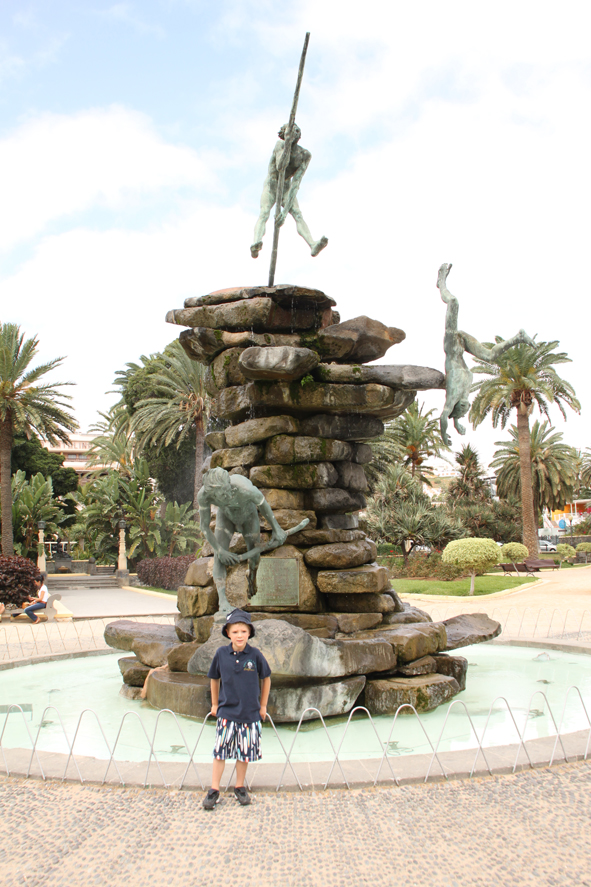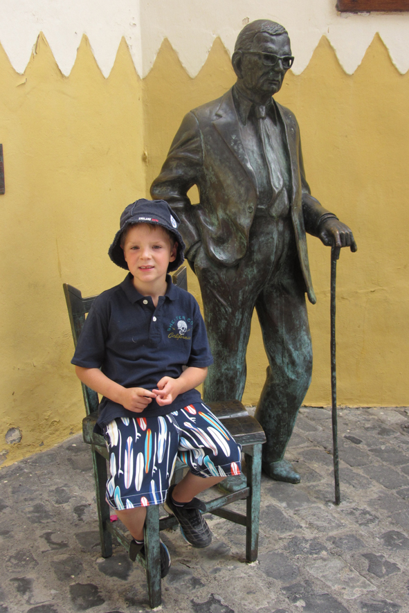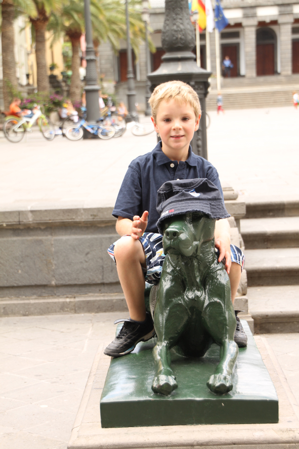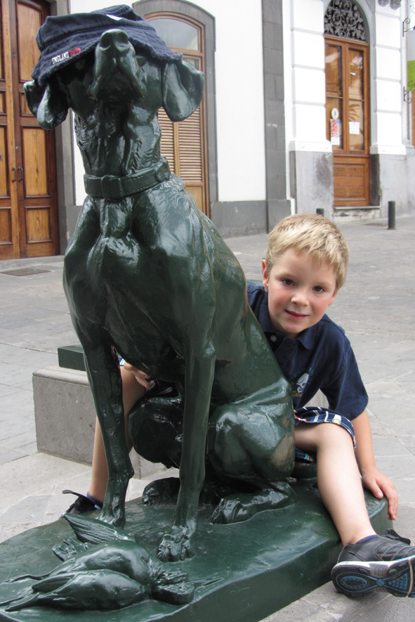 Callum found some statues of the Canary Island Dogs (and had to have his photo taken with each … with each dog wearing his England hat!!).