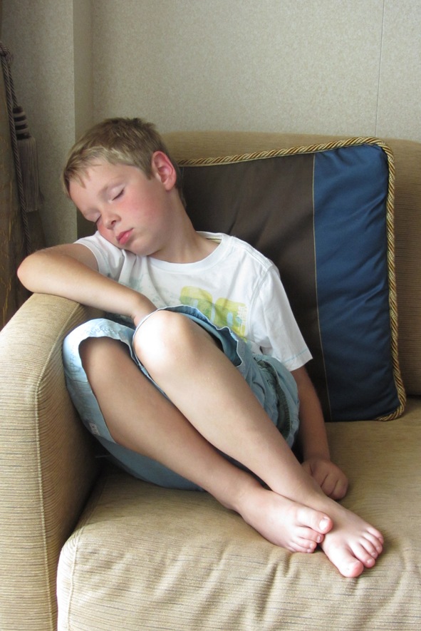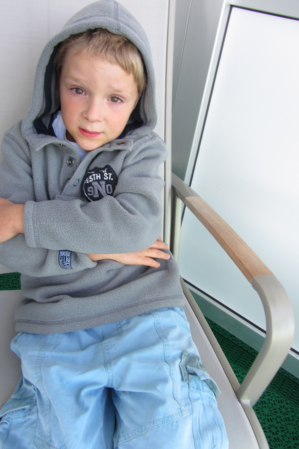 Once back on board, we decided to order room service for lunch. Soup and sandwiches … however about 2 minutes before it arrived, Callum fell asleep on the settee and didn’t stir when the chap brought the food into the cabin! We left him asleep whilst we had our lunch and he slept for an hour.