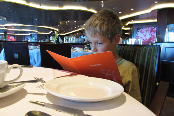 A leisurely morning today but still up in time to go down to the MDR for breakfast. Callum studied the menu intently before declaring what he wanted for starters and afterwards!