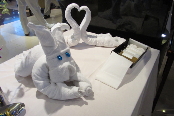 You can have lessons on folding napkins, creating towel animals, guess the spice competition (I was one spice away of getting a full house!), and a bed-making competition – the lady in the cabin next to us was the joint winner!