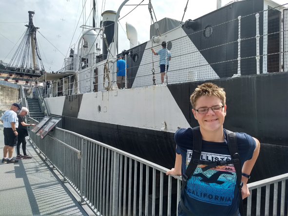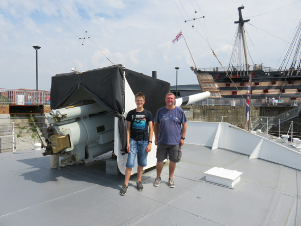 HMS Queen Elizabeth was docked in Portsmouth so we were keen to get our first glimpse of her. Must admit, after all the press enthusing how big the new aircraft carrier was, I was expecting something a little bigger – needless to say, Jon was a little bemused.