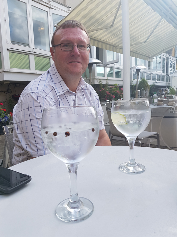 We arrived at The Folly a little early and were shown into the small bar to get a drink – gin and tonic went down a treat. Everyone was then encouraged to take a seat outside to wait the arrival of the boat. It was a lovely warm evening so people didn’t need to be asked twice.