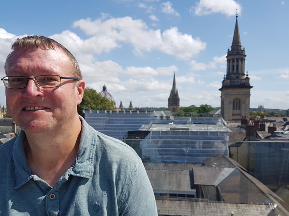 Jon had read somewhere about a rooftop bar in Oxford and as Callum wasn’t with us, we could pay a visit and admire the rooftop view. We ended up at The Varsity Club at The Covered Market. It had just opened when we arrived and we climbed the six flights of stairs to the top. I had a glass of prosecco and Jon a cider which we sipped whilst admiring the view.