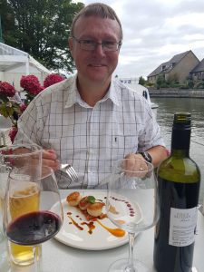 After the gin tasting, we had a gin cocktail and a glass of red accompanied by a cheese board. It was then we learnt of the overnight adventures the Scouts had had in Jersey – they were up at midnight, packing away their tents so they didn’t blow away … and ended up spending the night in the Scout Centre! “Best night ever”, the Scouts wrote on their blog!!