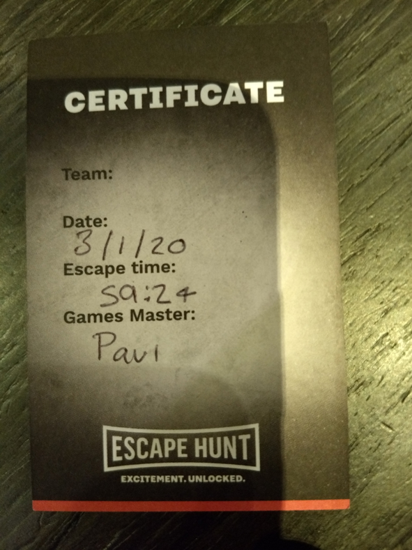 With a couple of hints, we managed to save the world and escape with just 36 seconds to spare! We call it making the most of our experience.