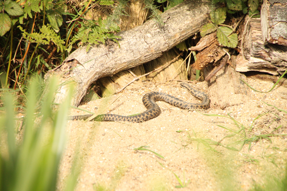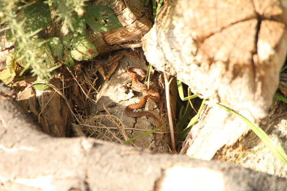 We were really lucky to see the adder … and thanks to an eagle-eyed local, there was a baby adder nestled in the logs.