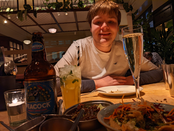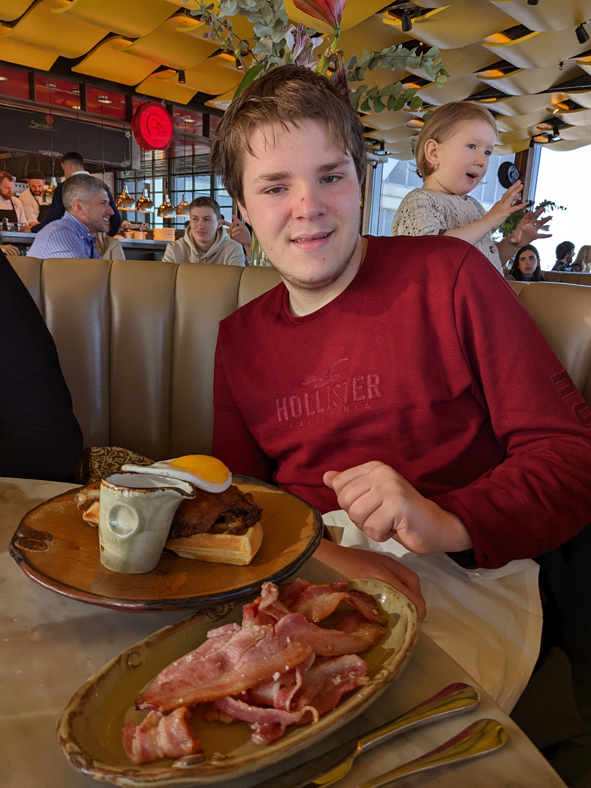 The menu was good, but Callum and I both opted for the signature dish – Duck and Waffle and it was really good. Jon went for Columbian Eggs with Smoked Salmon – a very generous potion.