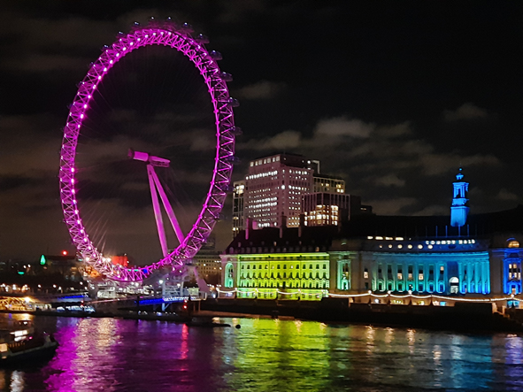 It was really mild for February so we walked back to hotel over Westminster Bridge. County Hall and the London Eye all illuminated. Like many buildings in the capital, County Hall was light up in the colours of Ukraine as a show of support.