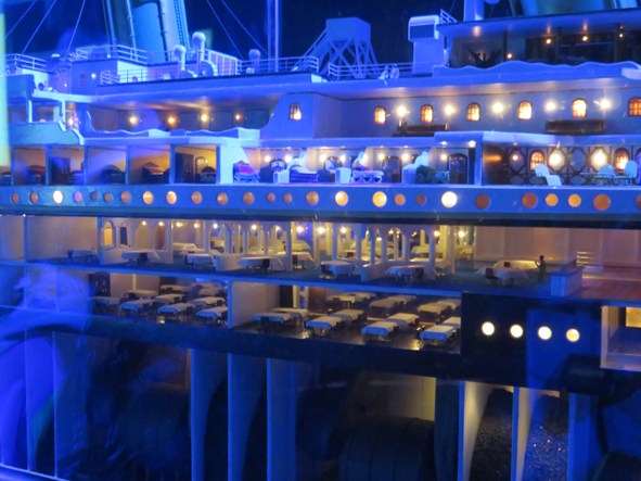 From the way it was billed, we were expecting more to have been recreated from the original – rooms. The staircase that was featured (and gave the impression it was a recreation) was in fact a mural. The best bit was the model ship which had had half cutaway so you could see in rooms inside the ship.