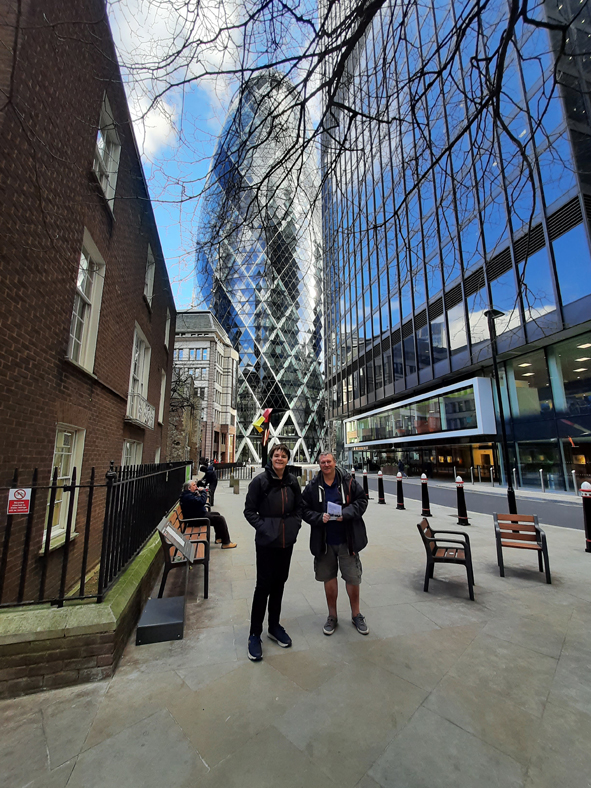 We needed to walk the breakfast off and had found a Treasure Trail that started just across the road from Heron Tower. This time we opted for a Spy Trail – City of London – The Gherkin. It’s an area we haven’t explored before and for Callum and I it was a chance to see the Gherkin up close.