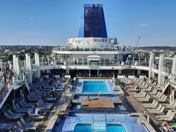 Alas, due to COVID, this cruise was cancelled and we received 125% FCC against a future cruise. Britannia was heading on a Baltic cruise in August 2022, so we rebooked then – and were lucky enough to get one of the aft facing cabins with a view over the wake of the ship.