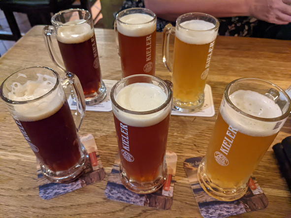 Slap bang in the city centre, we found the Keiler Brauerei – one of the local breweries. It would be rude to walk on past. Inside it was like being in caves – thick walls (no 3/4G signal inside!). Jon and I ordered a Bierprobe (3 “small” measures of the three beers brewed on site – Keiler Bier, Helles Pils & Saisonbier) – Callum had a Miranda (a cola/fanta mix).