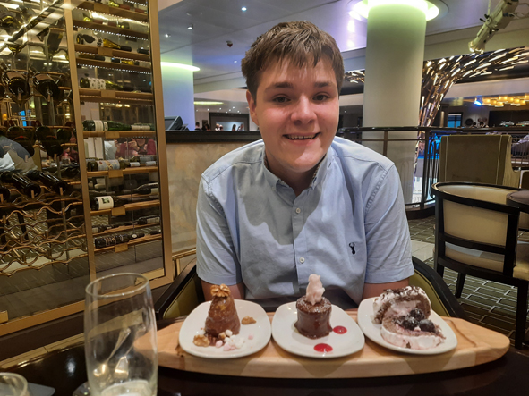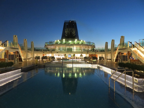 We headed back to the ship – Callum was worried we would miss the Syndicate Quiz. We weren’t that hungry, but found a couple of comfy seats in the shade by the Lido pool so sat there. We grabbed a couple of slices of pizza and Callum some Southern Fried Chicken. The jukebox quiz was in full flow and playing a good range of music from all eras. We didn’t take part but we knew the 80s/90s music but struggled with the other eras. Then down to the Syndicate Quiz and this time we struggled. We started off fine but had a bad spell in the middle. Just 9/16 today (they ran out of time to do the full 20 questions – hosts too busy chatting to us all!)