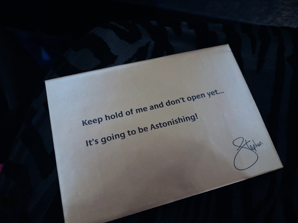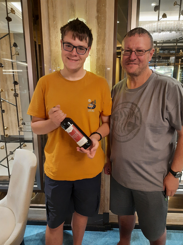 As it was a sea day, this was our second formal night. Granny had leant out Grandad’s DJ and Callum opted to wear this tonight. We had booked tickets to see Astonishing – the Steven Mulhern show – performed by the Headliners Theatre Company. Jon (again!) wasn’t too convinced but went with us as Callum and I both wanted to see it. As we entered the theatre, we were all given an envelope and told to hang onto it until the appropriate time.