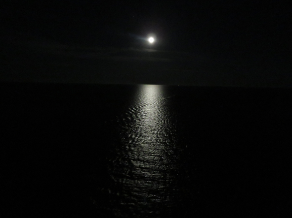 After Brodies, we headed up to one of our favourite spots onboard – the Sunset Bar. Armed with Kindles we sat out overlooking the wake … well, no real wake to speak off as we were barely moving and sea was like glass.