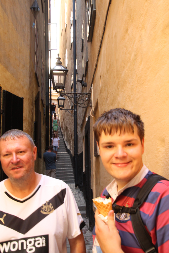 As the ship was getting ready to dock in Stockholm, we dived up to the buffet for breakfast – it would take an hour or so for the captain to get the ship alongside and then get clearance for passengers to disembark. We were off the ship by 9.30am and after a short wait for a shuttle, we were in town by 10am, drop off point was close to the Parliament Buildings. Oh, Newcastle were in action away at Brighton today, so Newcastle tops were a must!!