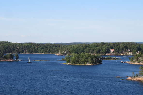 We were up at 6.30am this morning and Britannia had already started her sail through the Archipelago towards Stockholm. The sea was calm but the clouds were low and it was a little damp in the air.