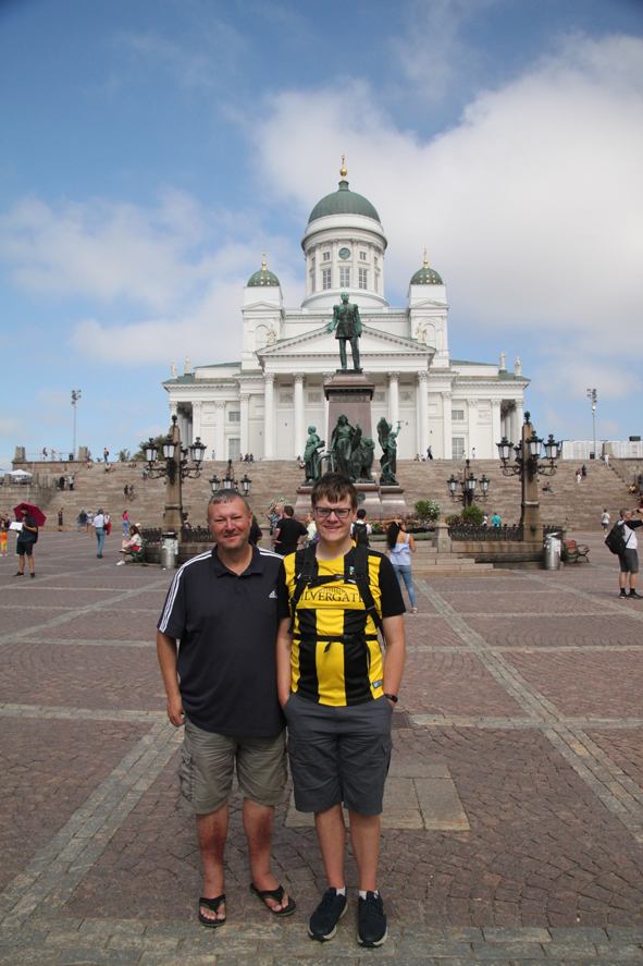 Once again we were loosely following the Nomad Epicureans Self Guided Walking Tour of the city. From the market, we headed to Senate Square. Jon and I remembered this from our last visit to the city – it was the start of the tour we did which included a look inside Helsinki Cathedral. It’s a very striking building – white with a blue dome with a wide set of steps leading from the square up to the Cathedral.