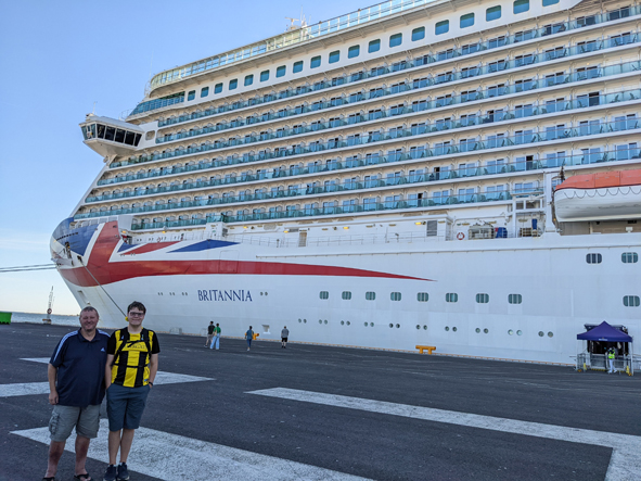 It was nearly 6pm before we got back to the ship – we’d missed the Syndicate Quiz. We went back to the Main Dining Room for dinner this evening and opted to eat fairly promptly so we would be finished in time to watch sailaway from the Sunset Bar.