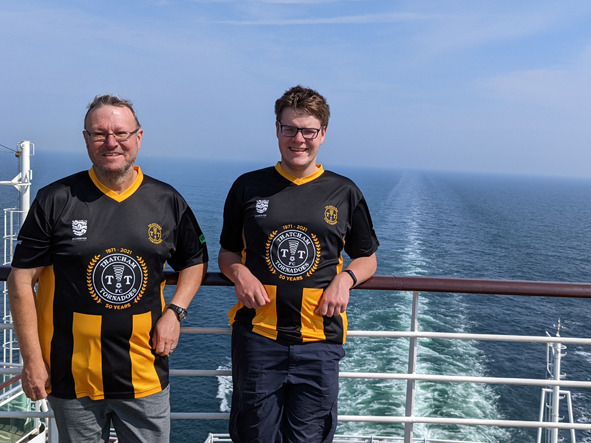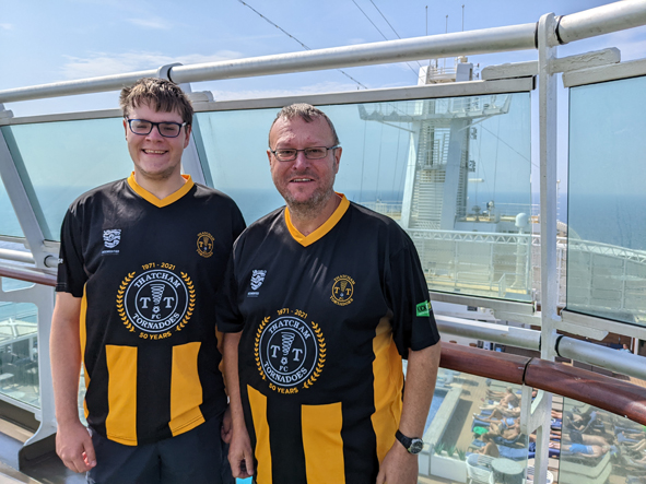 Afterwards it was a wander around the ship … Jon and Callum were sporting their 50th Anniversary Tornadoes Shirts and several people commented that they wondered which team they were supporting!