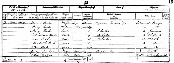 | George JACKSON | Head | Mar | 40 | Carpenter | Bath, Somersetshire |