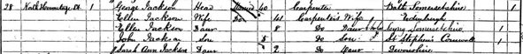 | John JACKSON | Son | Unm | 5 | Carpenter’s Son & Scholar | St Stephen, Cornwall |