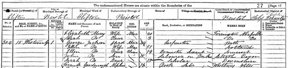 | Ellen JACKSON | Daughter | Unm | 19 | Domestic Servant | Somerset |