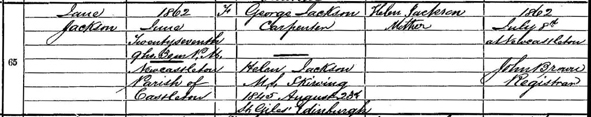 1862 – Birth of daughter, Jane Jackson