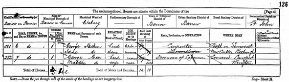| George JACKSON | 30 | Lodger | Bath | Carpenter |